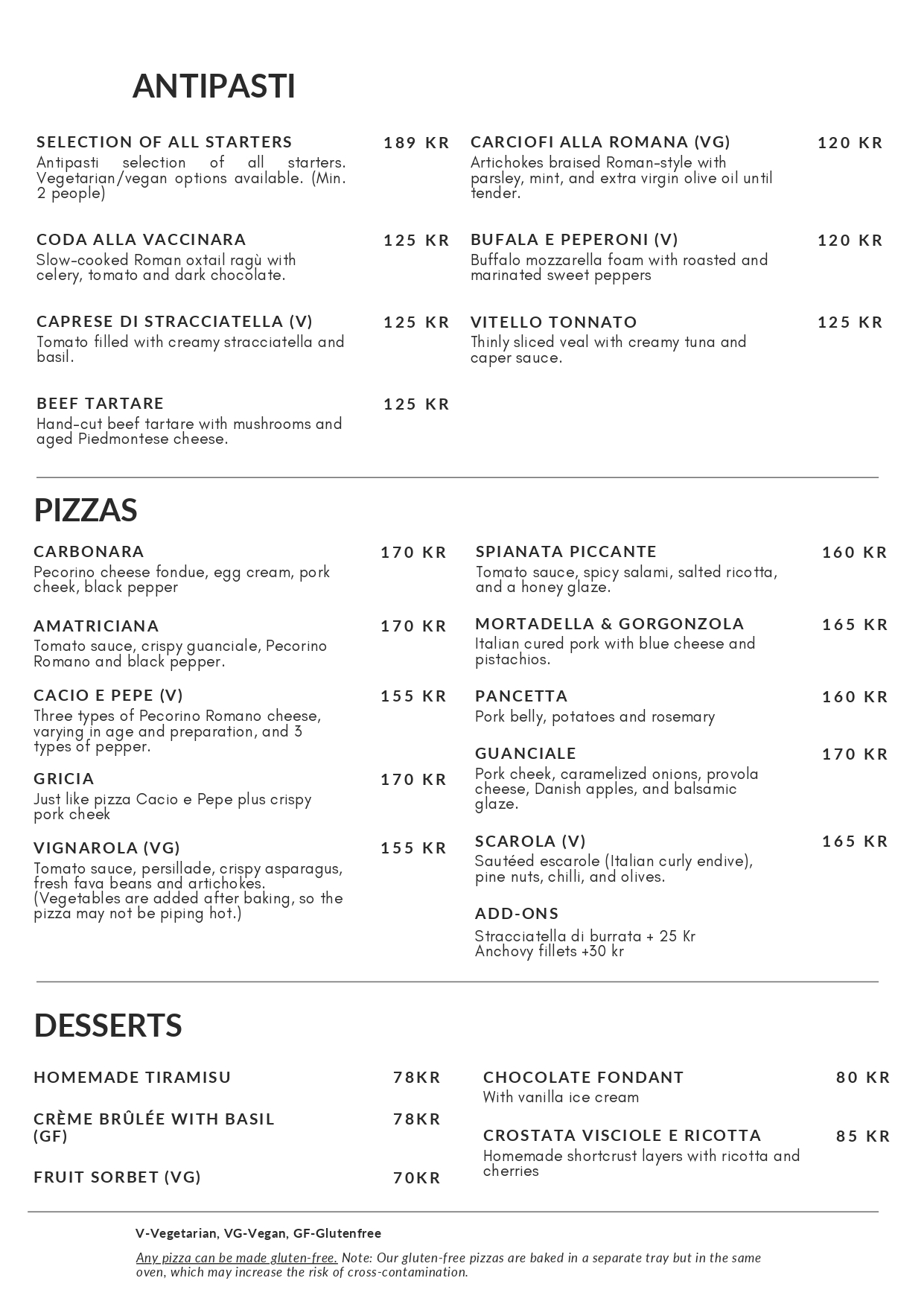 Dette er restaurantens menukort